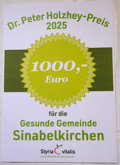 Mit dem Projekt „Senioren-Treff“ wurde eine Initiative ausgezeichnet, die das soziale Miteinander in der Gemeinde stärkt. Seit 1990 ist Sinabelkirchen Teil des Gesunde Gemeinde-Netzwerkes. Der Preis ist auch eine Würdigung für die jahrelange Arbeit des Arbeitskreises Gesunde Gemeinde unter der Führung von Ella Lang.
